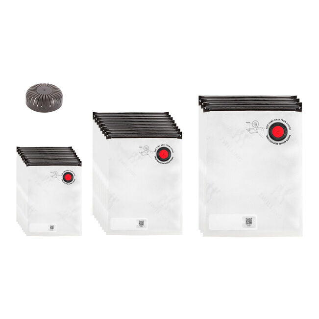 Com o sistema Fresh & Save, pode fazer compras uma vez por semana e refrigerar ou congelar frutas frescas, vegetais, carne e peixe nos nossos recipientes a vácuo e sacos e desfrutar dos benefícios do seu próprio mercado de produtos frescos em casa. Prepare as suas refeições com antecedência e saboreie-as tão frescas como no dia em que foram cozinhadas. Cozinhe a carne sous-vide ou marine para grelhar em apenas 30 minutos em sacos e recipientes a vácuo.
