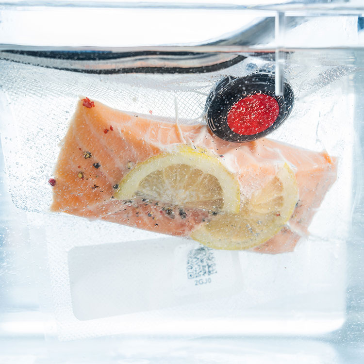 Devido à sua resistência ao calor, os sacos a vácuo são perfeitos para cozer sous-vide. A vantagem disso é ao cozinhar suavemente os alimentos, os aromas e nutrientes são retidos.