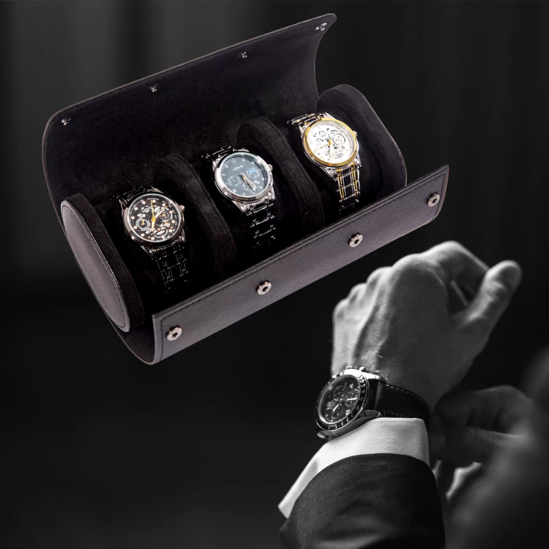 Com espaço para acomodar de 1 a 3 relógios, este porta relógio é mais do que um acessório único.