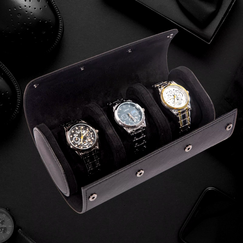 Com interior macio em camurça, o Porta Relógios, protege os seus relógios de quedas e arranhões, seja na sua casa, escritório ou nas viagens que você leva os seus relógios favoritos.
