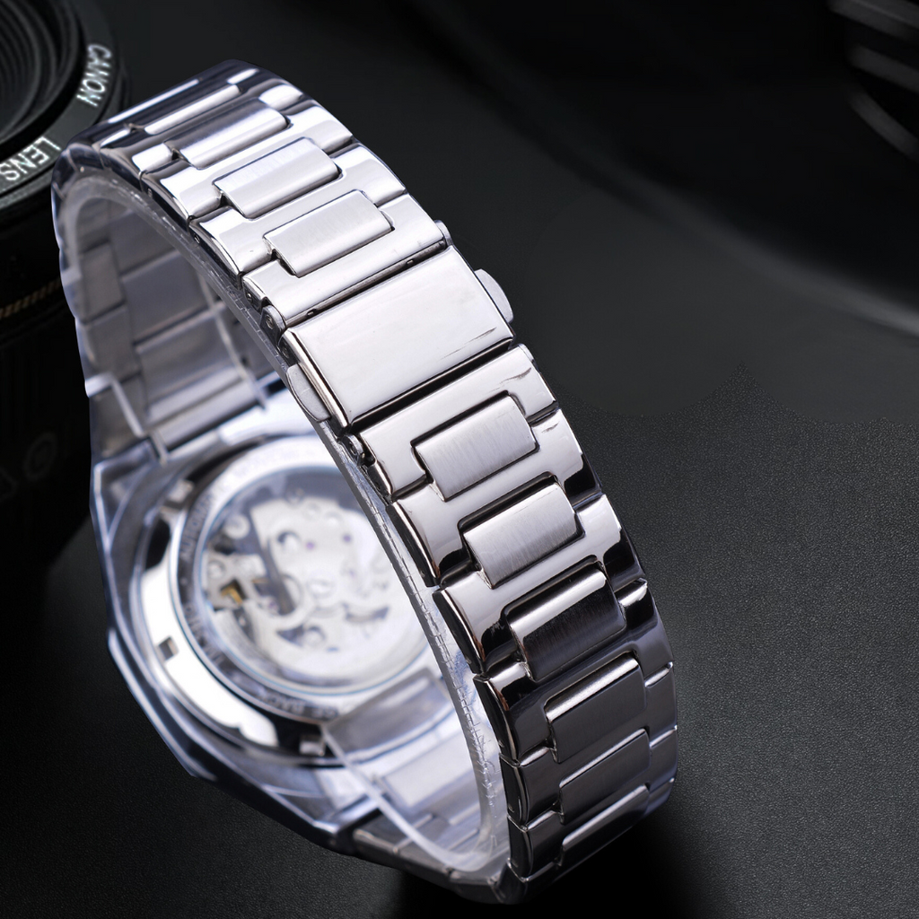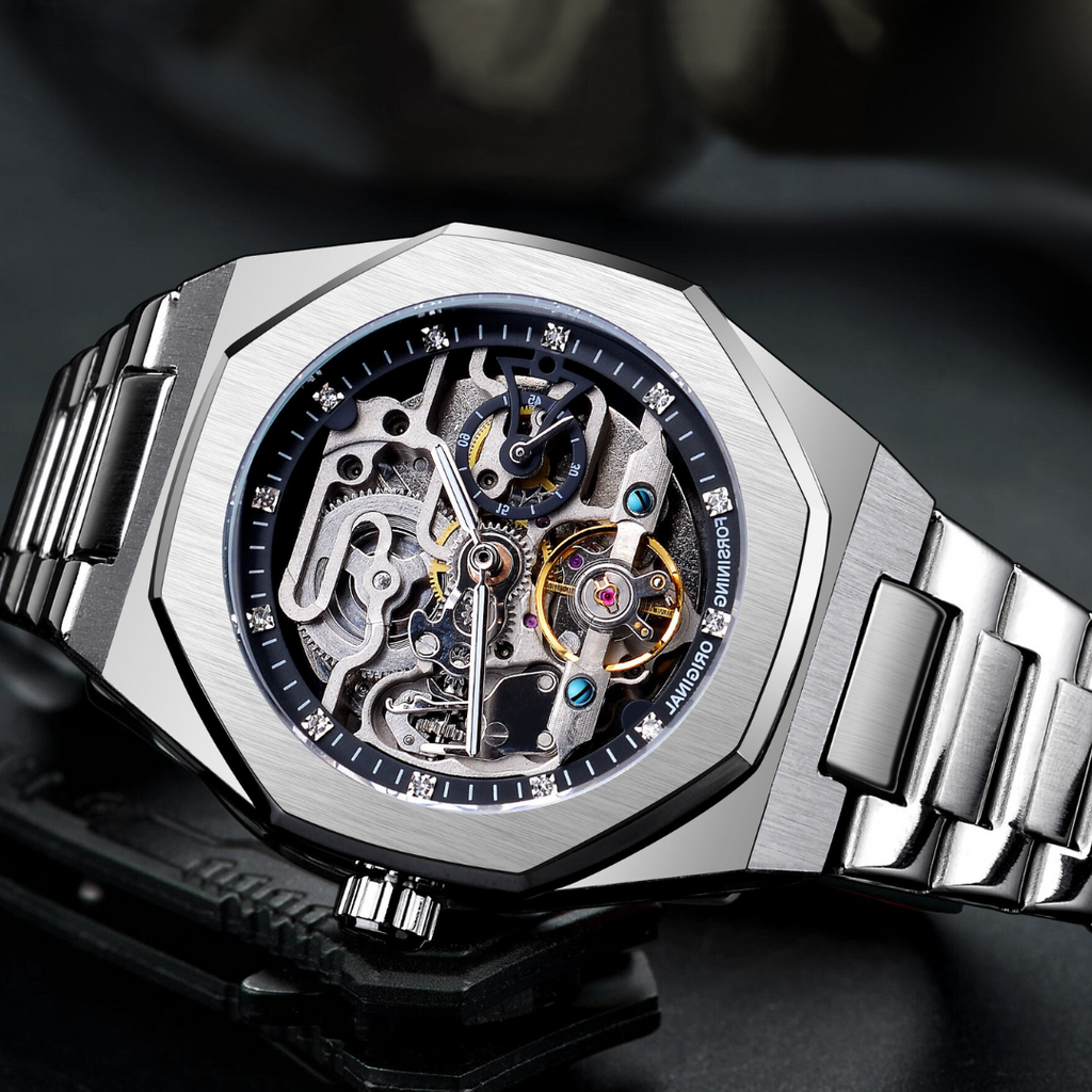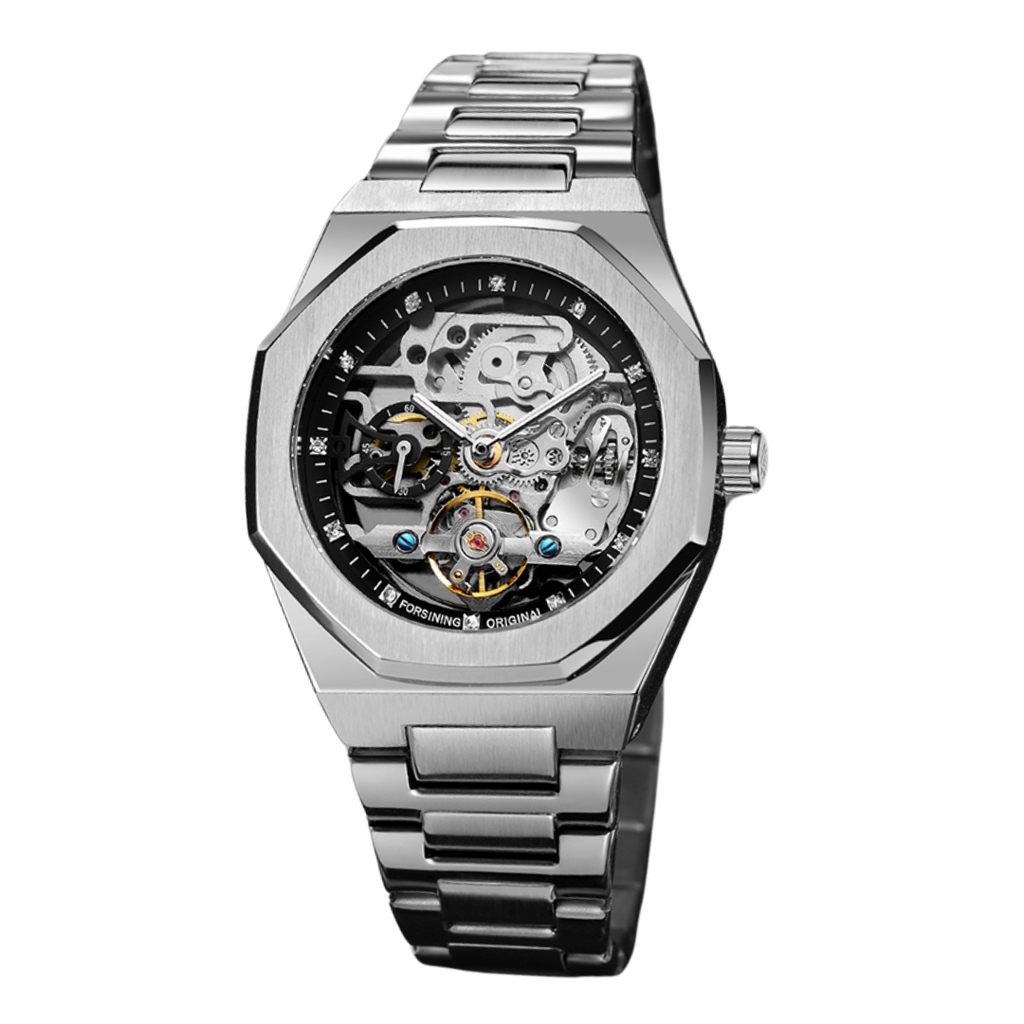 Experimente a combinação perfeita de estilo e funcionalidade com o Relógio Automático Forsining - Vision. Com uma caixa e pulseira em aço inoxidável, este relógio é durável e elegante, ideal para qualquer ocasião. Seu mostrador esqueleto revela um design moderno, enquanto a resistência à água de 3Bar (30 metros) oferece segurança para o dia a dia. Com um movimento mecânico automático, cada detalhe foi pensado para impressionar.