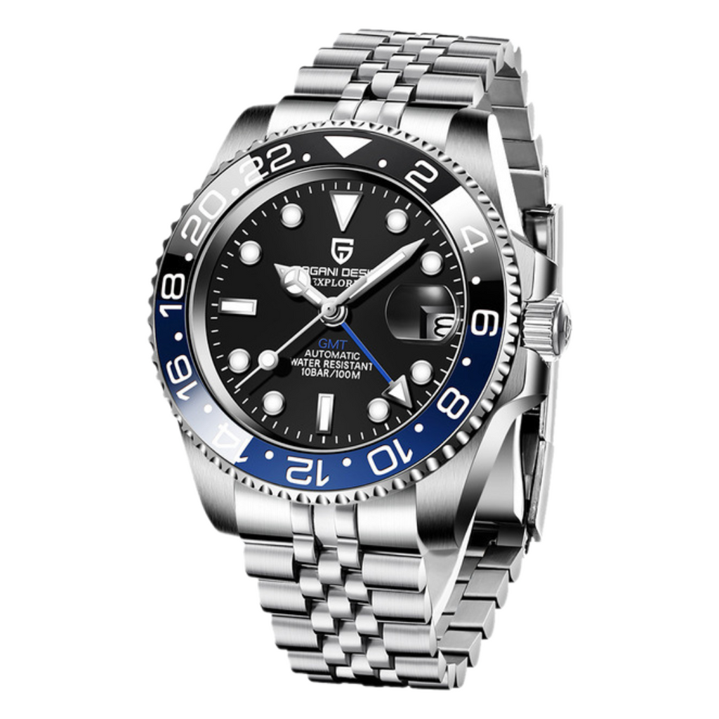 Os recursos não param por aí: o relógio inclui ponteiros luminosos para leitura em baixa luz, um calendário completo e fusos horários múltiplos para viagens internacionais. A moldura giratória de cerâmica multifuncional permite ajustar cronômetros e definir fusos horários com facilidade.