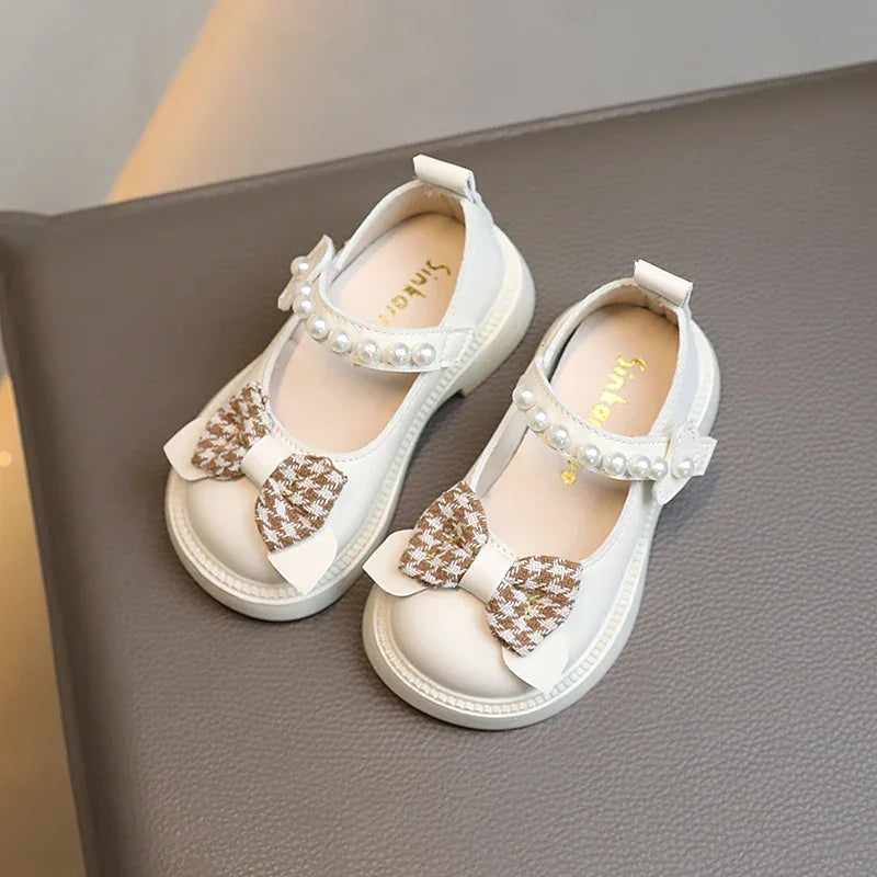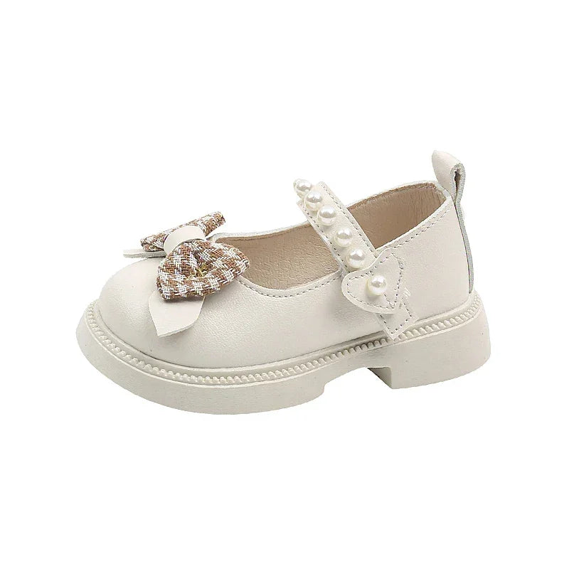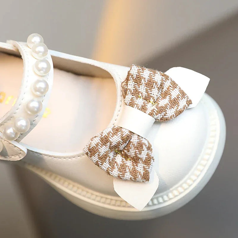 Sandália Infantil com Laço e Pérolas Solado Macio Bege Lenogue