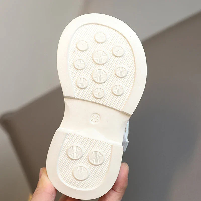 Delicadeza e conforto unidos em uma sandália com detalhes elegantes em pérolas e laço, ideal para os dias mais especiais da sua menina.