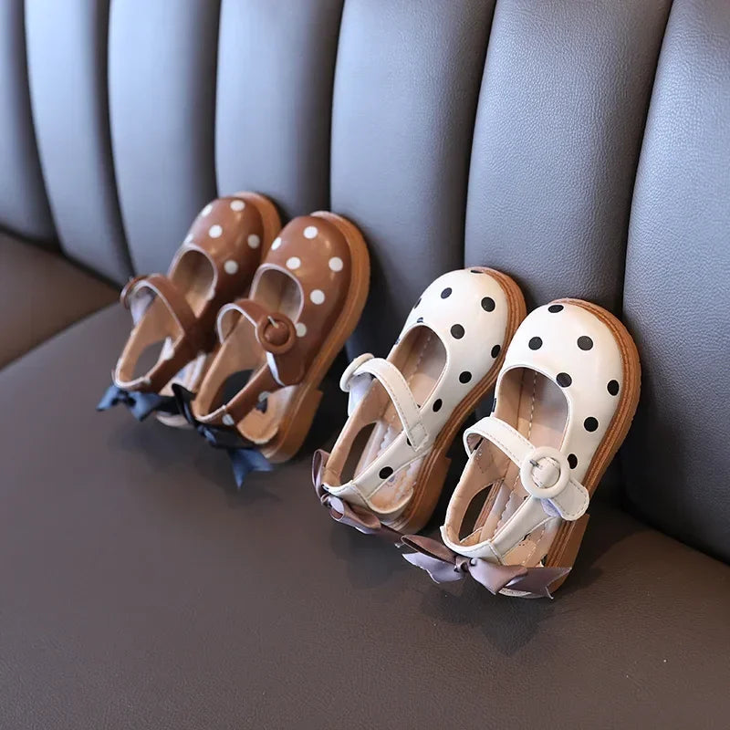 Fabricada em couro PU macio com recortes elegantes e estampa de poás, esta sandália garante respirabilidade e segurança graças ao solado de borracha antiderrapante. O laço traseiro adiciona um toque de feminilidade, enquanto o fechamento hook & loop facilita o ajuste para garantir conforto e praticidade no dia a dia.